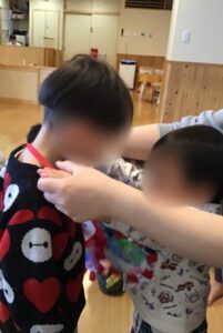 プレゼントがありました。プレゼントを受け取ると「ありがとう」と言って大喜びでした。