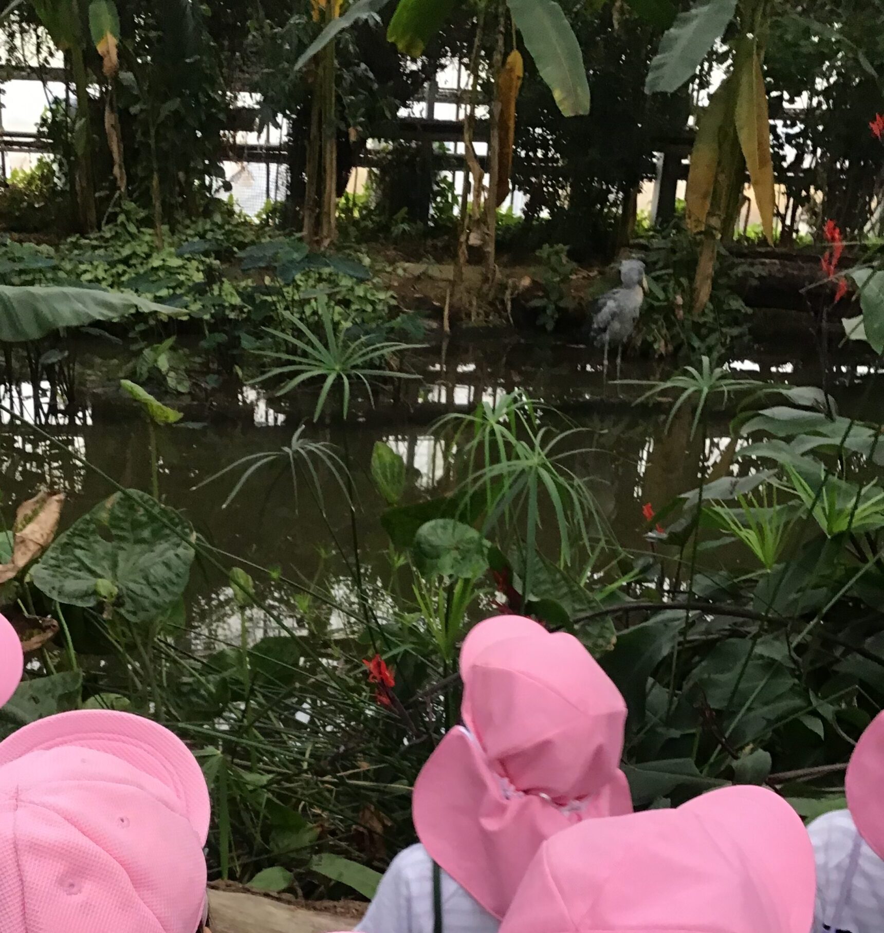 ハシビロコウのエリアでは、「どこにいるの?」「あっちにいる」とハシビロコウを探すことに夢中でした。